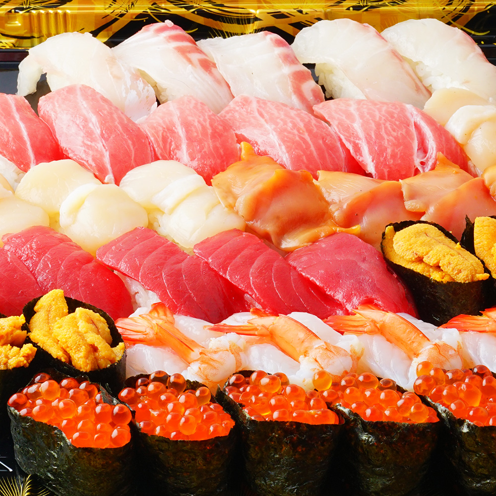 まぐろ(とろ)/まぐろ/いくら/うに/エビ/タイ/ホタテ/アカガイなど 新鮮な素材を食卓へ。
